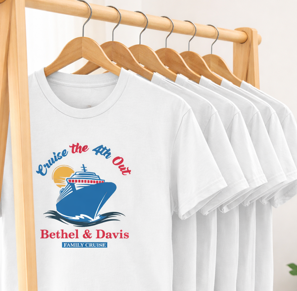 “Cruise the 4th Out” Bethel & Davis Family Cruise T-Shirt — a custom-designed commemorative tee celebrating family unity, fun, and unforgettable memories at sea.